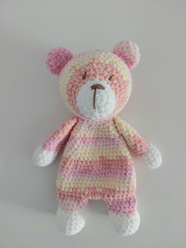 Heerlijk zacht gehaakt beertje. . Dit beertje is ongeveer 22 cm lang. Het is gehaakt met Little Darling Sprenkled Gradient garen van Scheepjes.