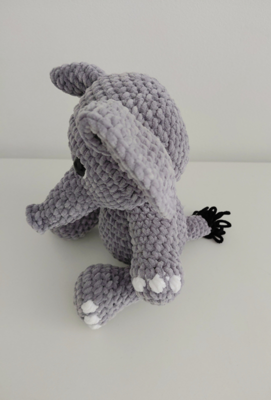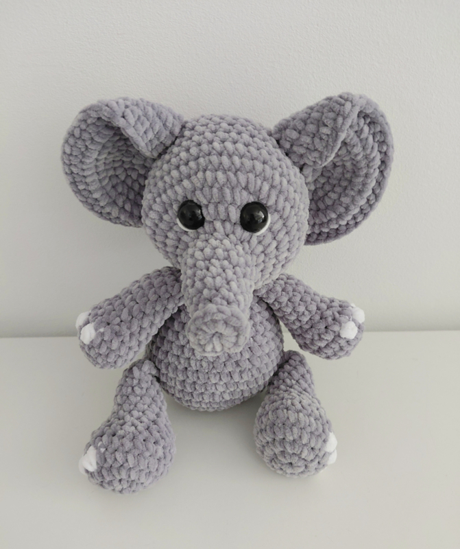 Leuke olifant gehaakt met velvet garen van Durable. Voorbeeld is in het Mouse Grey en Light Blue van Durable. Ze kunnen ook gemaakt worden met Scheepje Little Darling. Kijk voor alle kleurmogelijkheden op de site