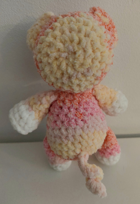 Leuk biggetje gehaakt met velvet garen van Scheepjes. De kleur is Little darling Sprinkled 05 Strawberry. Met mooie roze glitter ogen.